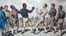 Tom Molineaux fights Tom Cribb, with Bill Richmond standing behind him.